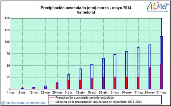 Únicamente 50 mm de precipitación acumulada en tres meses de primarvera han hecho que sean unas condiciones realmente duras para las plantas. Y claramente excepcionales en Valladolid.